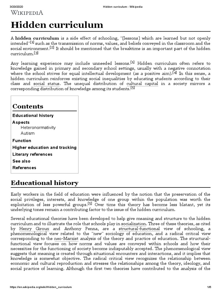 Hidden Curriculum Definition, EDU102 (Hidden Curriculum) - Term Definition What is a ..., We did not find results for:. We did not find results for: Maybe you would like to learn more about one of these? Check spelling or type a new query. Any type of learning experience may include unintended lessons;